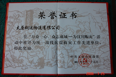 2008年7月25日,我公司被太原市委統戰部授予“統戰系統抗震救災先進(jìn)單位”榮譽(yù)稱(chēng)號。
