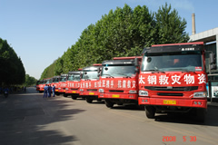 2008年5月30日,我公司選派3公司10臺豪沃8X4自卸車(chē),承擔了太鋼支援甘肅地震災區700頂帳篷等物資的緊急運送任務(wù)。