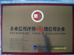 2009年12月3日,我公司被中國物流與采購聯(lián)合會(huì )評為企業(yè)信用評價(jià)AAA級信用企業(yè)。