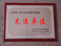2011年12月29日,我公司獲得由中共太原市尖草坪區委員會(huì )和太原市尖草坪區人民政府聯(lián)合頒發(fā)的《2006-2010法治草坪建設先進(jìn)單位》榮譽(yù)稱(chēng)號。