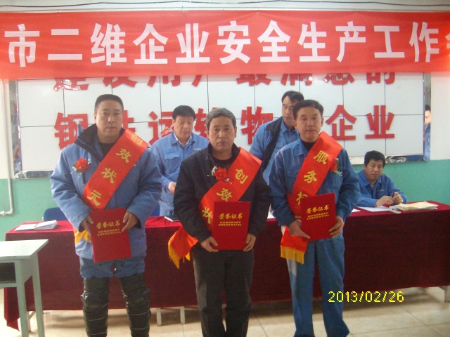 2013年2月25日,公司召開(kāi)“2012年度先進(jìn)表彰會(huì )”,通報表彰公司****分公司等4個(gè)先進(jìn)單位、冷軋作業(yè)區等8個(gè)先進(jìn)作業(yè)區、任維彪等9名服務(wù)標兵、王曉晉等45名先進(jìn)個(gè)人、楊志峰等19名創(chuàng )效狀元、白衛平等9名創(chuàng )效第二名和董陳生等2名創(chuàng )效第三名。