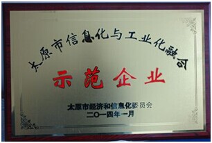 2014年11月26日公司被太原市經(jīng)濟和信息化委員會(huì )評為“太原市信息化與工業(yè)化融合示范企業(yè)”。