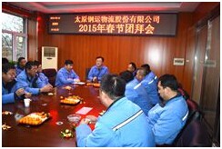 2015年2月19日,公司召開(kāi)春節團拜會(huì )。公司總經(jīng)理胡永生代表董事會(huì )向全體職工及家屬送上誠摯的春節祝福,同時(shí)各部門(mén)各分公司經(jīng)理也表達出對鋼運物流的深切祝福。會(huì )后,總經(jīng)理助理尹躍飛、郝建國深入現場(chǎng)慰問(wèn)一線(xiàn)職工。