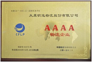 2015年2月9日,中國物流與采購聯(lián)合會(huì )下發(fā)《關(guān)于發(fā)布第十九批A級物流企業(yè)名單的通告》(物聯(lián)評估字〔2015〕16號文件),我公司通過(guò)AAAA級綜合服務(wù)型物流企業(yè)資質(zhì)復核,通過(guò)日期為2015年2月9日,有效期為3年。
