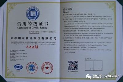 2018年12月3日,經(jīng)315全國征信系統誠信企業(yè)認證評審,我公司被評為AAA級信用單位,并頒發(fā)AAA級信用等級證書(shū)。